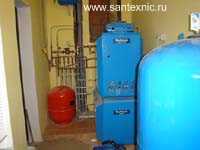Особенностью приведенного ниже частного дома является котельная очень небольшой площади, являющаяся к тому же проходным коридором. Классическая схема - одноконтурный котел и водогрейный бойлер вместе с насосами и гребенками отопления, горячего, холодного водоснабжения, внутренних и уличных теплых полов, бассейнового оборудования и даже расширительный бак компактно разместились на стене котельной. Единственное, что пришлось разместить в подсобном помещении - это расширительный бак автономной системы отопления (на снимках не показан). Отопление выполнено из стальных панельных радиаторов. Разводка труб медная, скрытая в полах. |